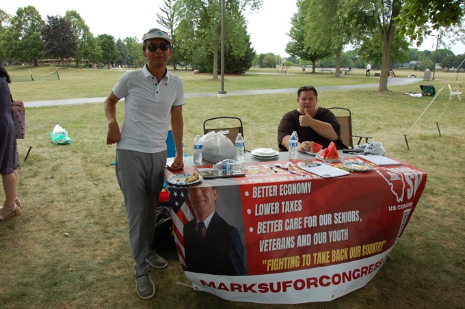 华联会主席候选人黄正东(左)、张怀波(右)出席野餐会